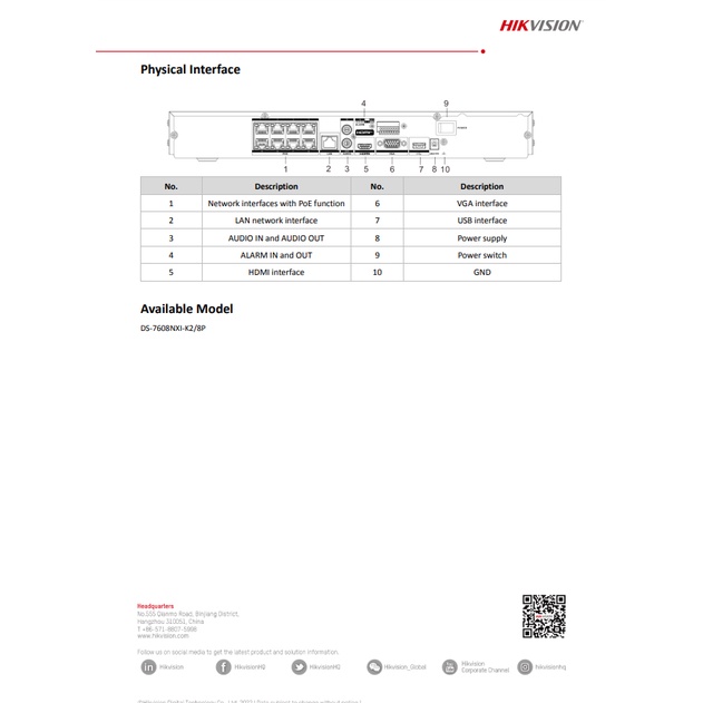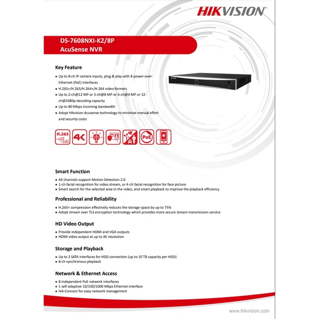 Hikvision DS-7608NXI-K2/8P 8 Channel 4K 8MP 8x POE IP Network CCTV NVR Security Recorder - 4K NVR