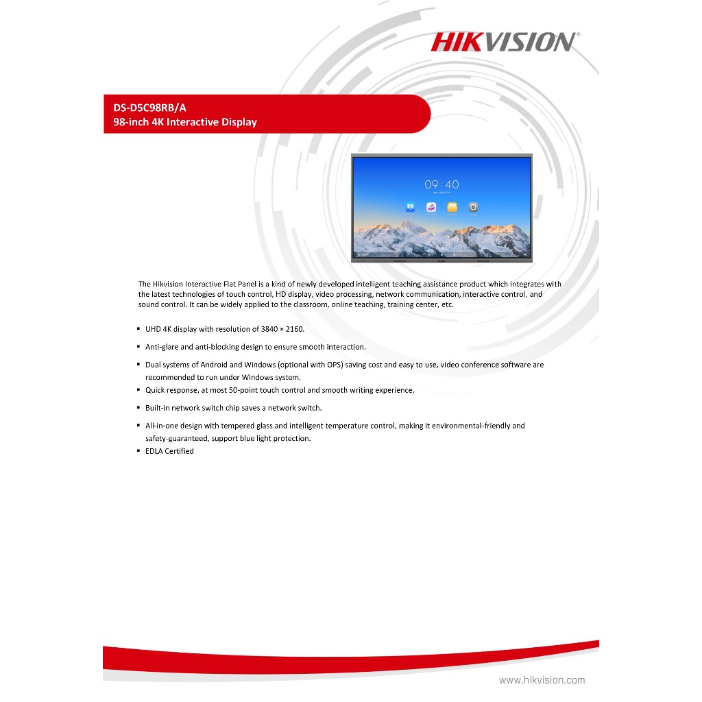 Hikvision DS-D5C98RB/A 98" 4K Interactive Display - Hikvision 98" 4K Interactive Display