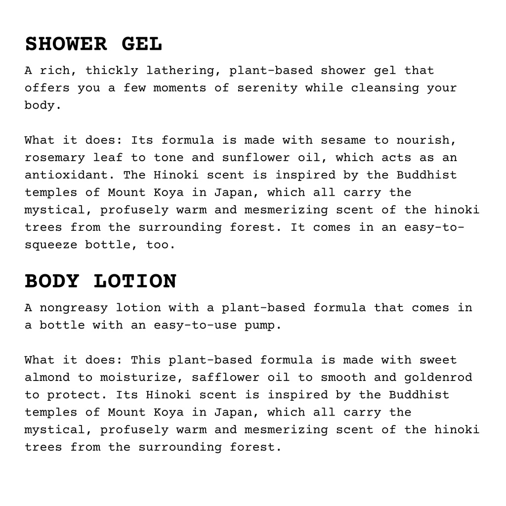 Hinoki Shampoo Conditioner Shower Gel Body Lotion Set (75ml) - GENUINE LE LABO