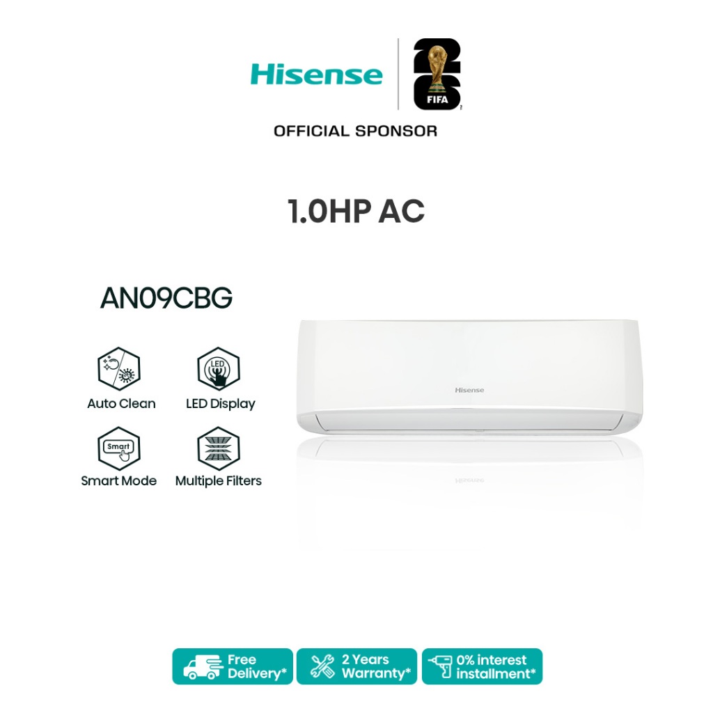 [FREE Shipping] Hisense Non-Inverter 1.0HP AC - AN09CBG / 5 STAR Inverter Air Con 1.0HP AC - AI10TUGS