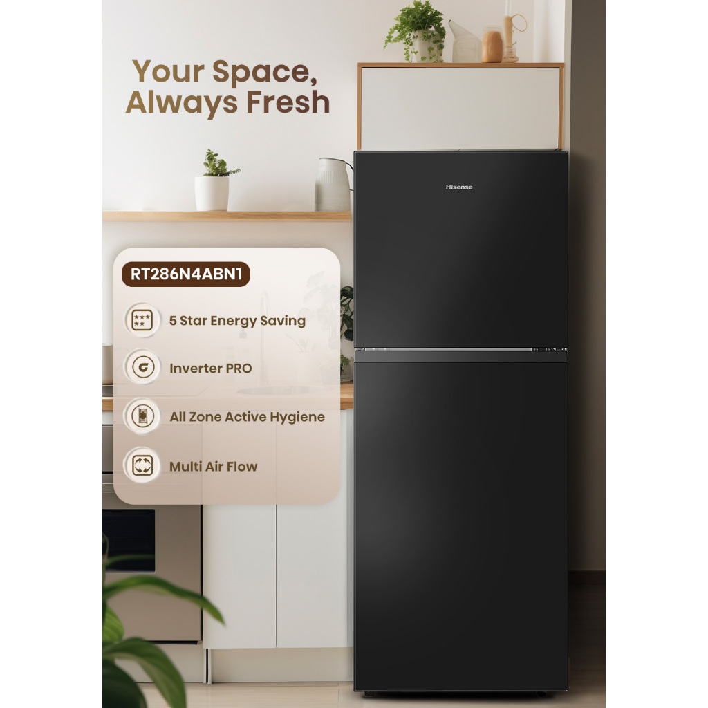 Hisense 2 Door Top Mount Inverter Fridge / Refrigerator / 5 STAR / Deodorizing Filter / All Zone Hygiene - RT286N4ABN1