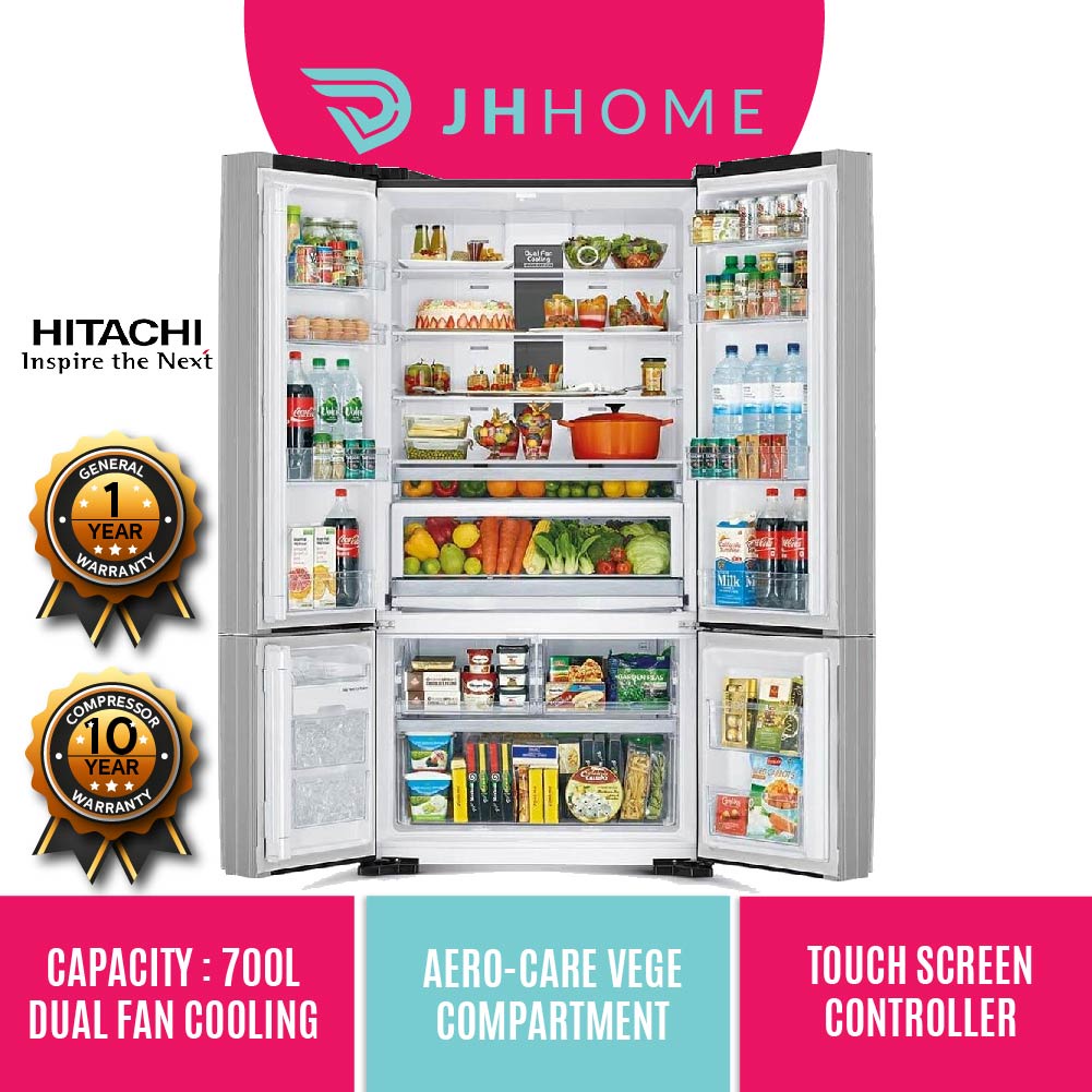 Hitachi Inverter 4 Doors Fridge Bottom Freezer Refrigerator Auto Ice Maker (700L) R-WB850P5M GBK XGR