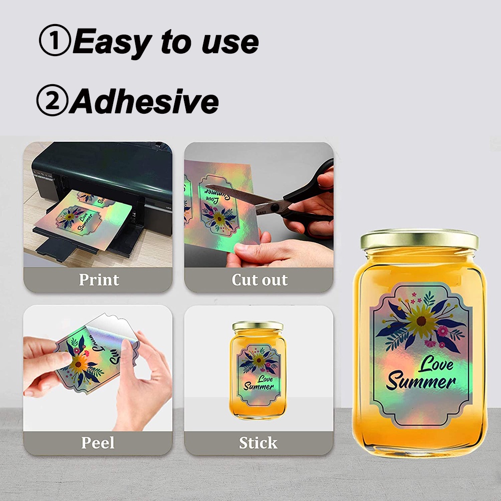 Holographic Sticker A4 Printable Vinyl Sticker Paper Waterproof Self-adhesive Rainbow InkJet Printer