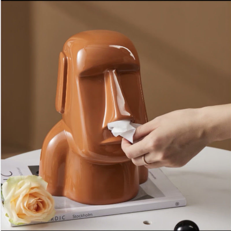 Home Creative Tissue Box Easter Island Stone Statue Tissue Storage Box Personality Art Paper Box Bedroom Living Room Decorations