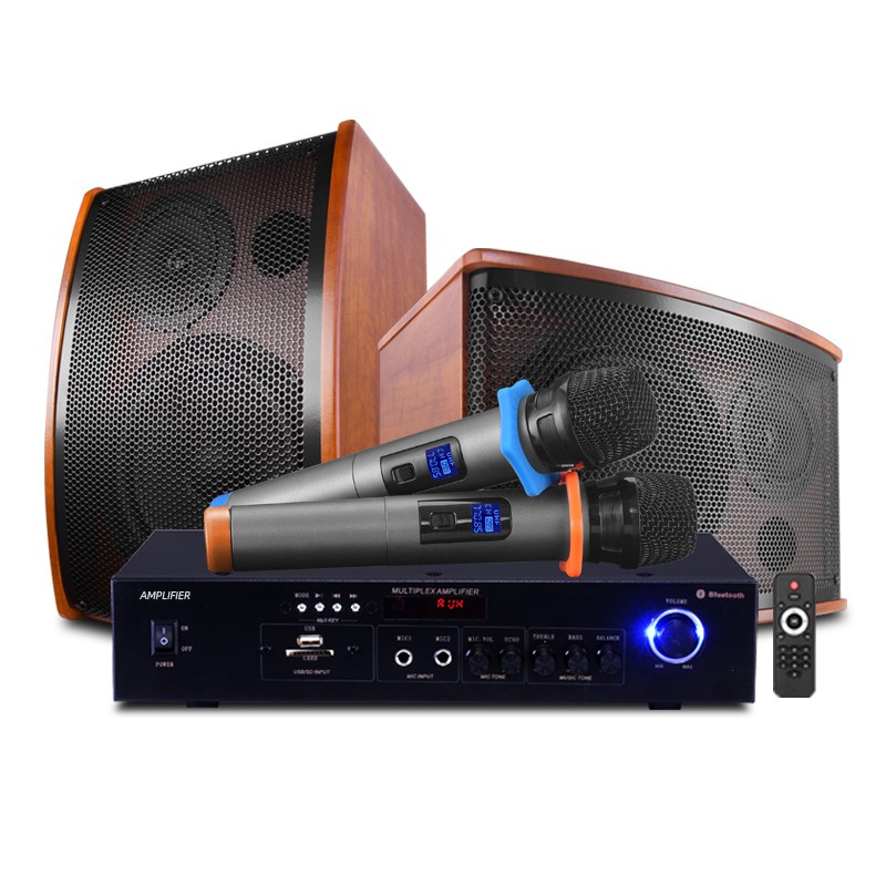 Home Karaoke System Full Set Family KTV Speaker TV Amplifier With 2 Wireless Microphone Bluetooth/Optical/Coaxial/USB Support PC DVD Suitable For Living Room/Shop/Bar etc.