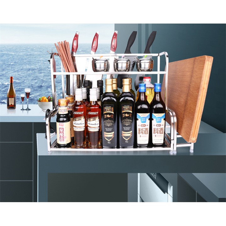 DOH : Home Kitchen Rack 40cm Stainless Steel Condiment Spice Rack Seasoning Rack Kitchen Storage Knife
