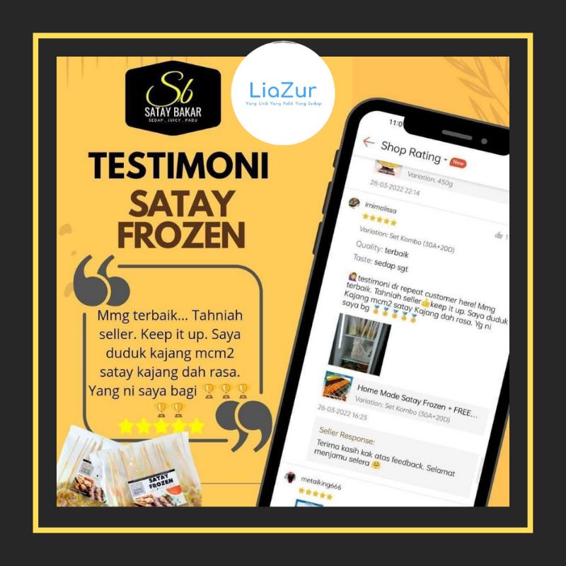 Home Made Satay Frozen (Tanpa Lemak) + FREE Kuah Kacang Sedap (Ayam/Daging Tenderloin)- [KL/Selangor/Putrajaya]