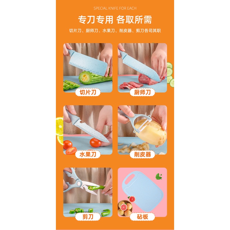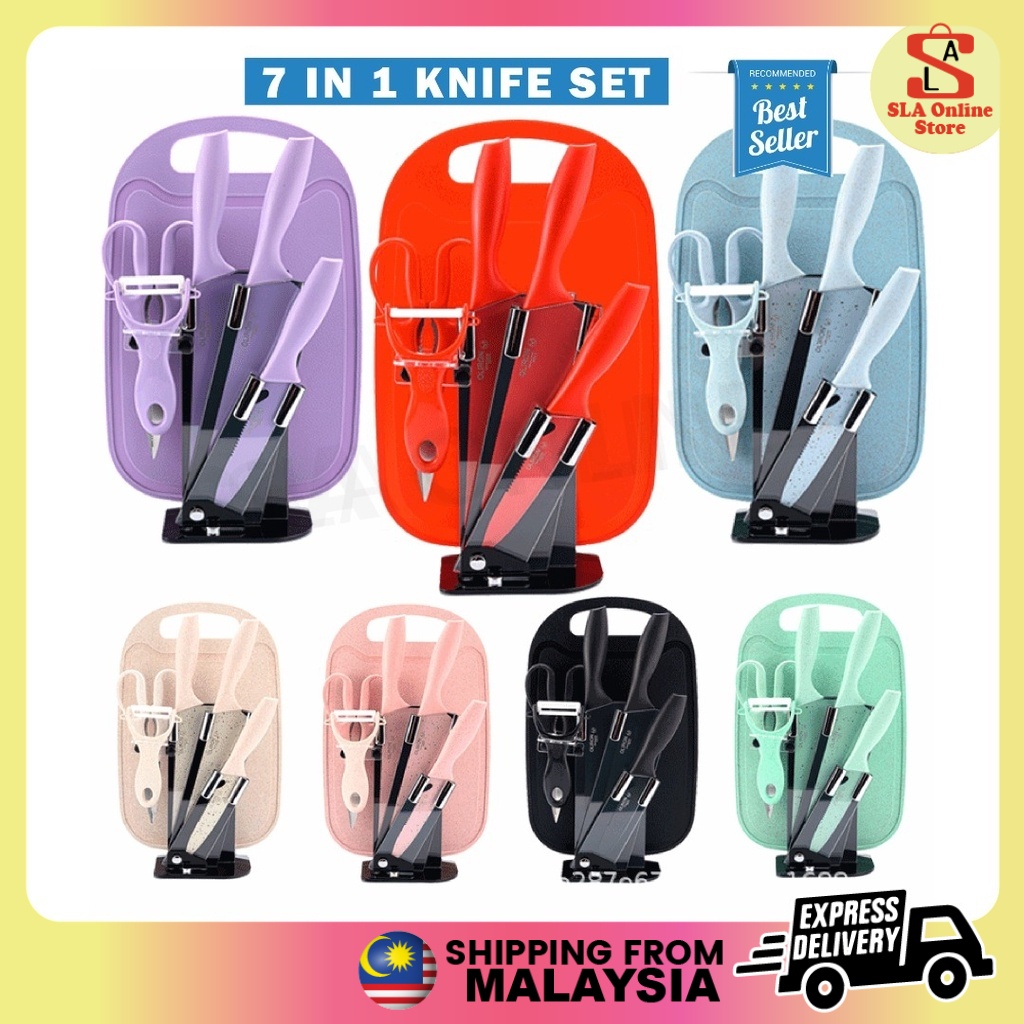 7 in 1 Kitchen Knife Set Kitchen Knives Utensils Pisau Viral Set Dapur Pisau Gunting set 厨房便携式7件刀套