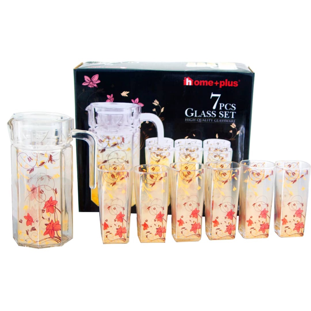 Home+Plus Glass Pitcher Jug Set with 6 Pcs Tumbler Glass Tableware Beverage Pitcher Drinking Tumbler [Ready Stock]