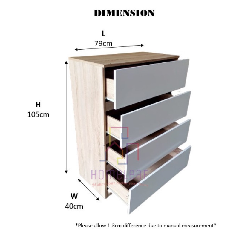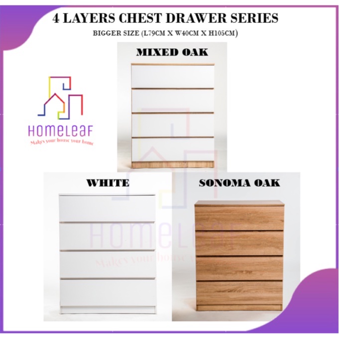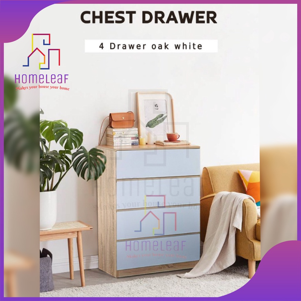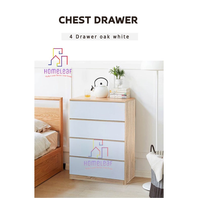 HomeLeaf 4 Layer (105cm Height)Bigger Size Chest Drawer 4 tier Storage Cabinet White Oak Bedroom Drawer Cabinet Almari