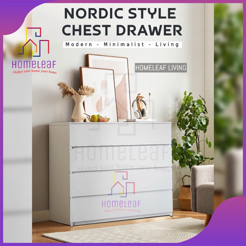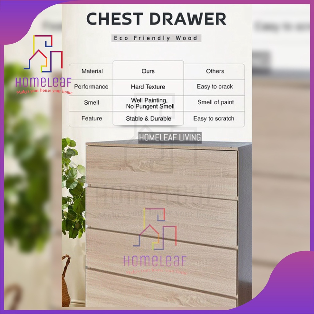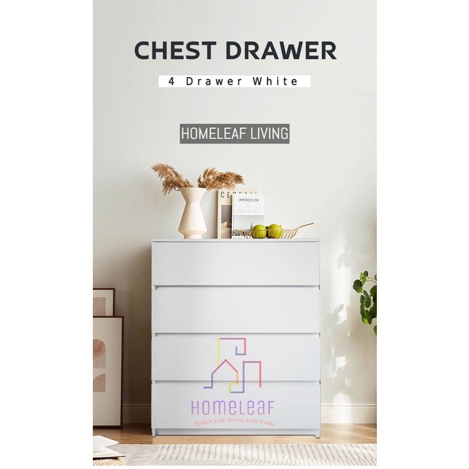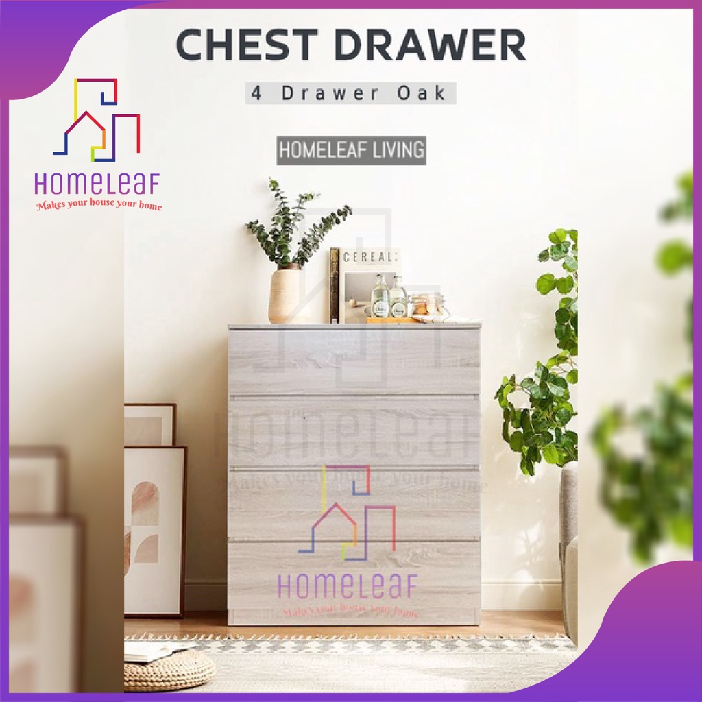 HomeLeaf 4 Layer (105cm Height)Bigger Size Chest Drawer 4 tier Storage Cabinet White Oak Bedroom Drawer Cabinet Almari