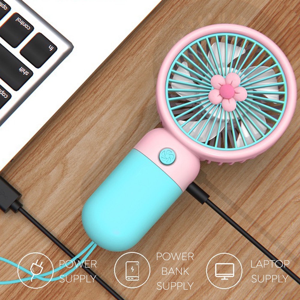 HomeXure - MINI SLING FAN Portable Hand Table USB Charge Battery Desk Cooling Small Cute Kipas Fan