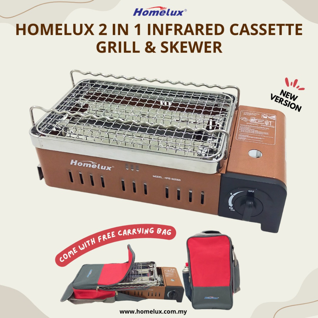 Homelux 2-in-1 Portable BBQ Stove Cassette Grill Net & Skewer Stand Infrared Camping Butane Gas Stove HPB-6006B
