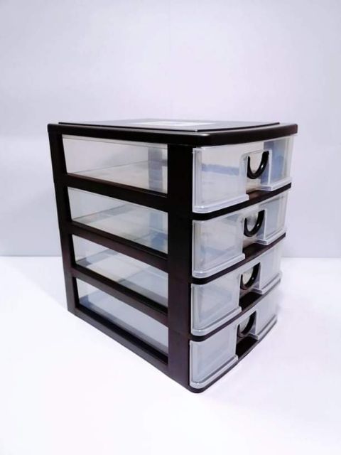 Homeware 1008/4 4 Tiers Plastic Transparent A4 Size Drawer / Office Documents /Stationery Drawer / Cosmetic Storage