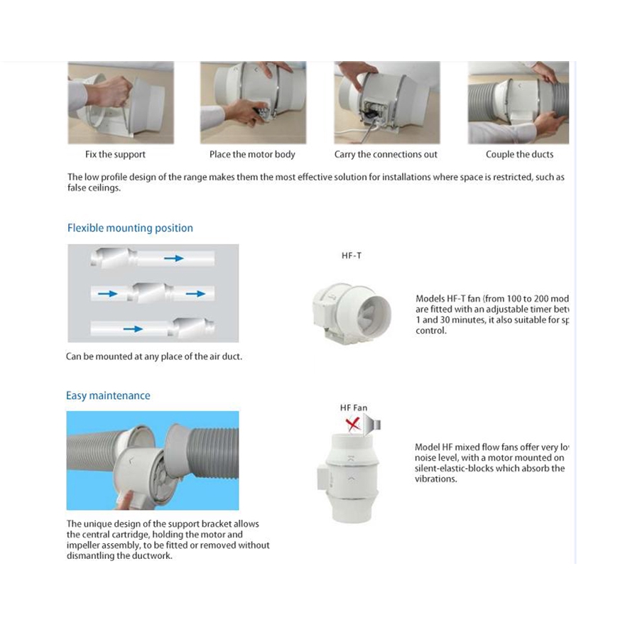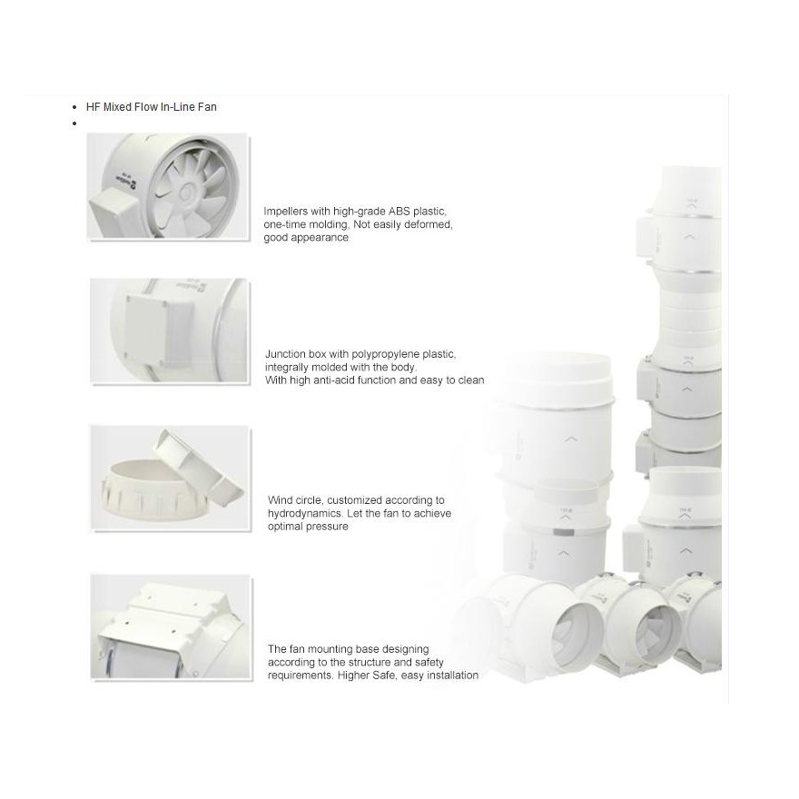 Hon&Guan Extractor Exhaust Fan Mixed Flow Ventilation System Exhaust Air Inline Duct Fan