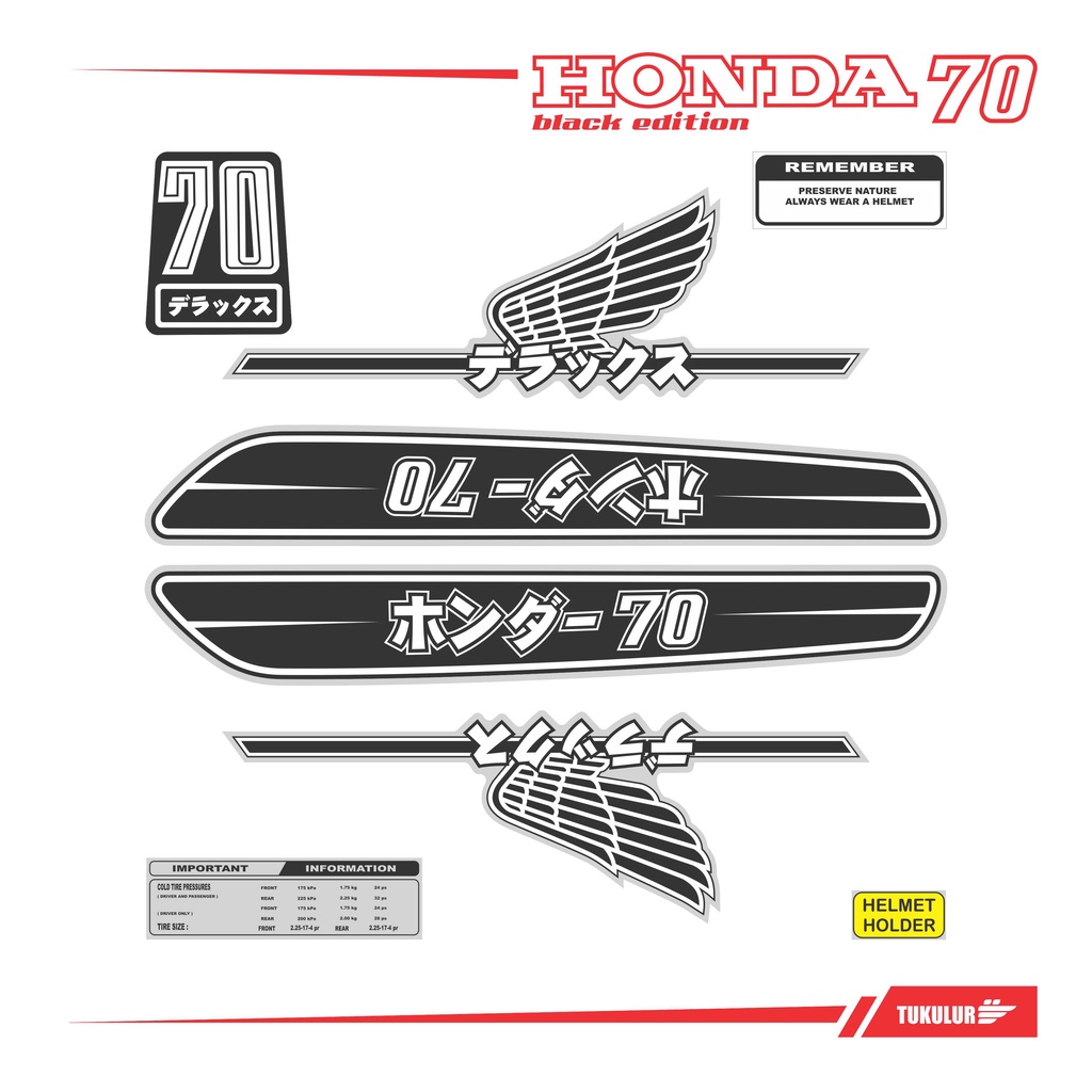 Honda C70 BLACK EDITION STRIPPING Sticker FONT JAPAN
