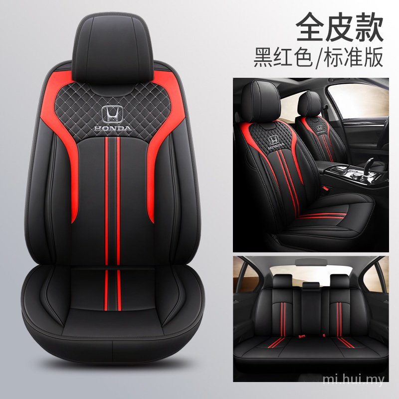 Honda Car Seat Cover Leather Cushion 5 Seats Honda City Civic Jazz Accord HRV PU Leather 5-Seat Universal Front + Rear 5 Seat Car Seat Cover Seat Cushion Kusyen Kereta / Full set / Four seasons Available/Waterproof/Breathable