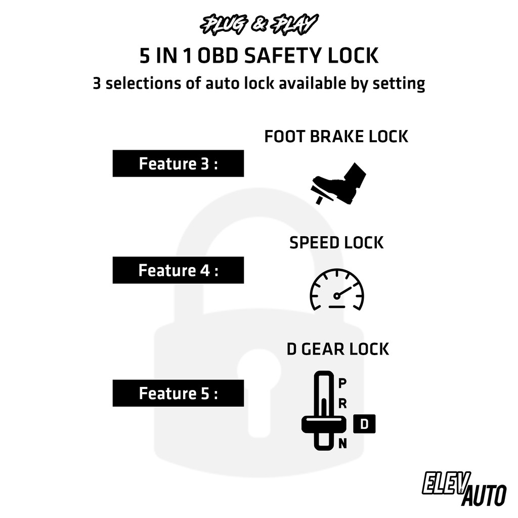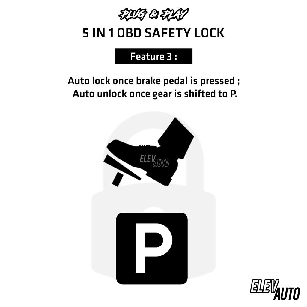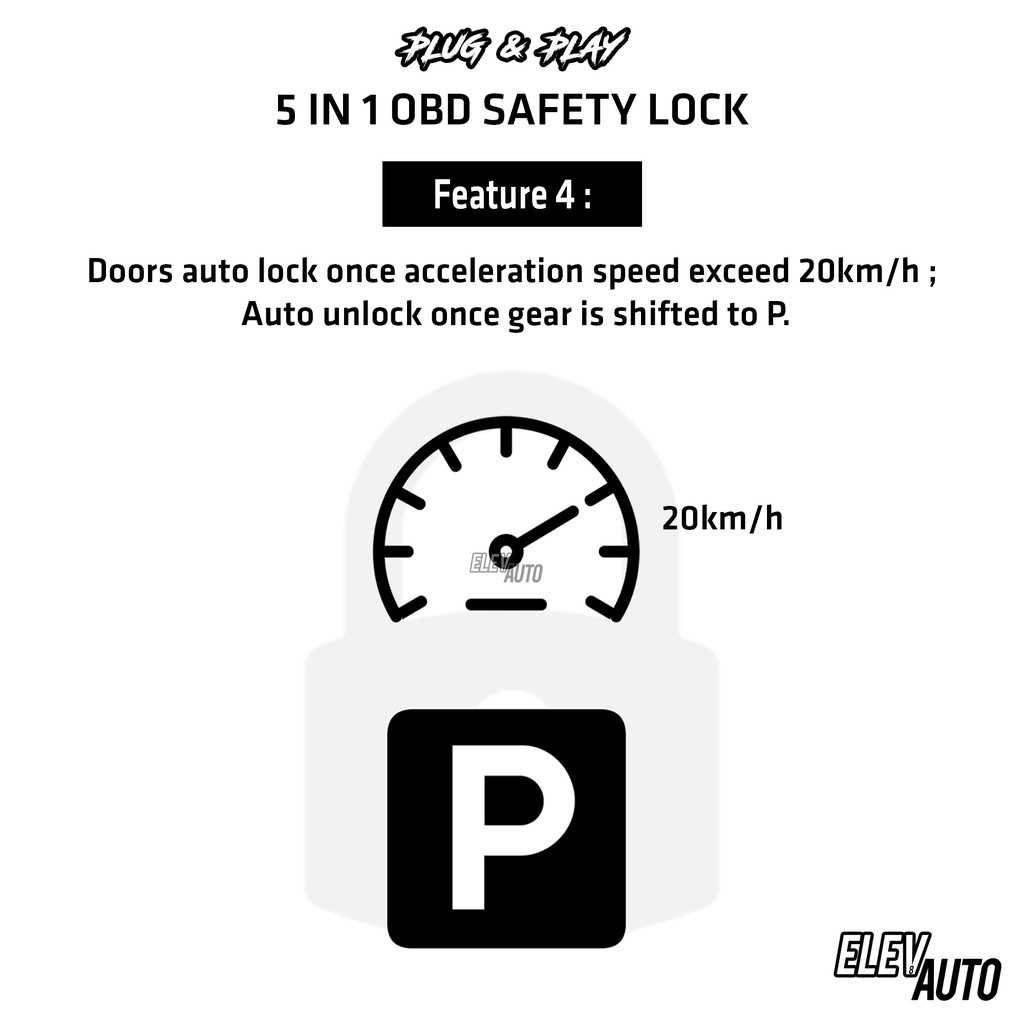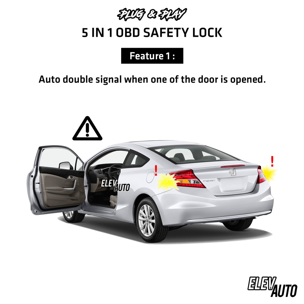 Honda City GM6 2014 - 2020 OBD Safety Auto Door Lock (5 in 1) Foot Brake Speed D Lock 2015 2016 2017 2018 2019