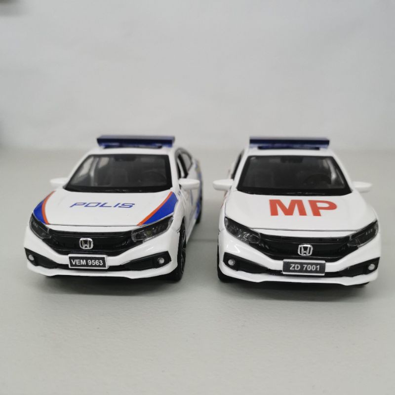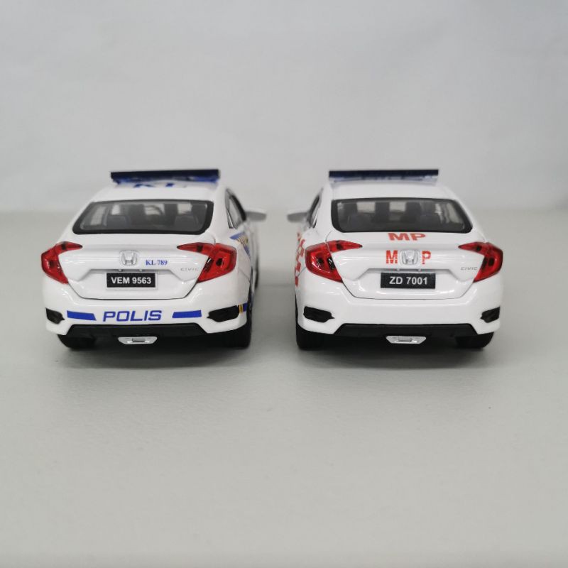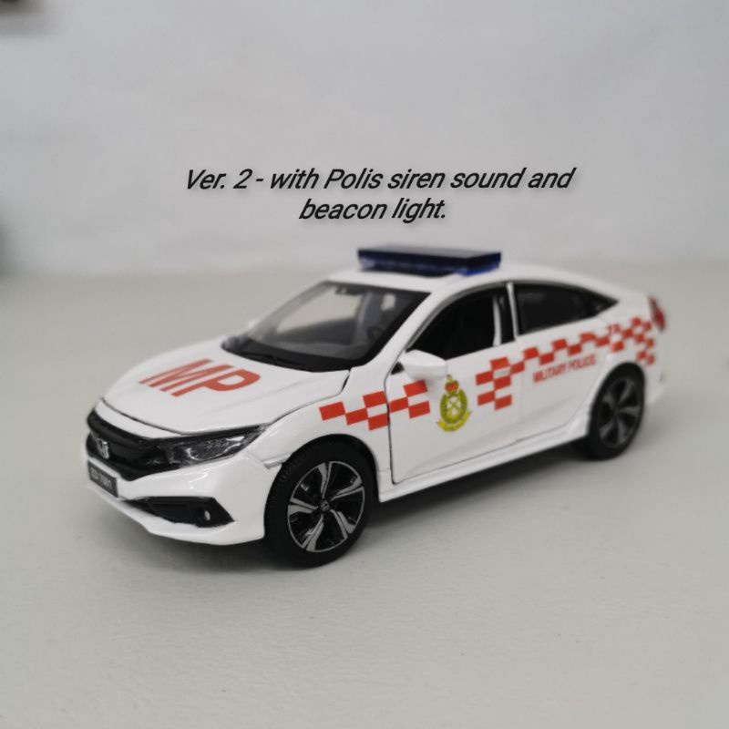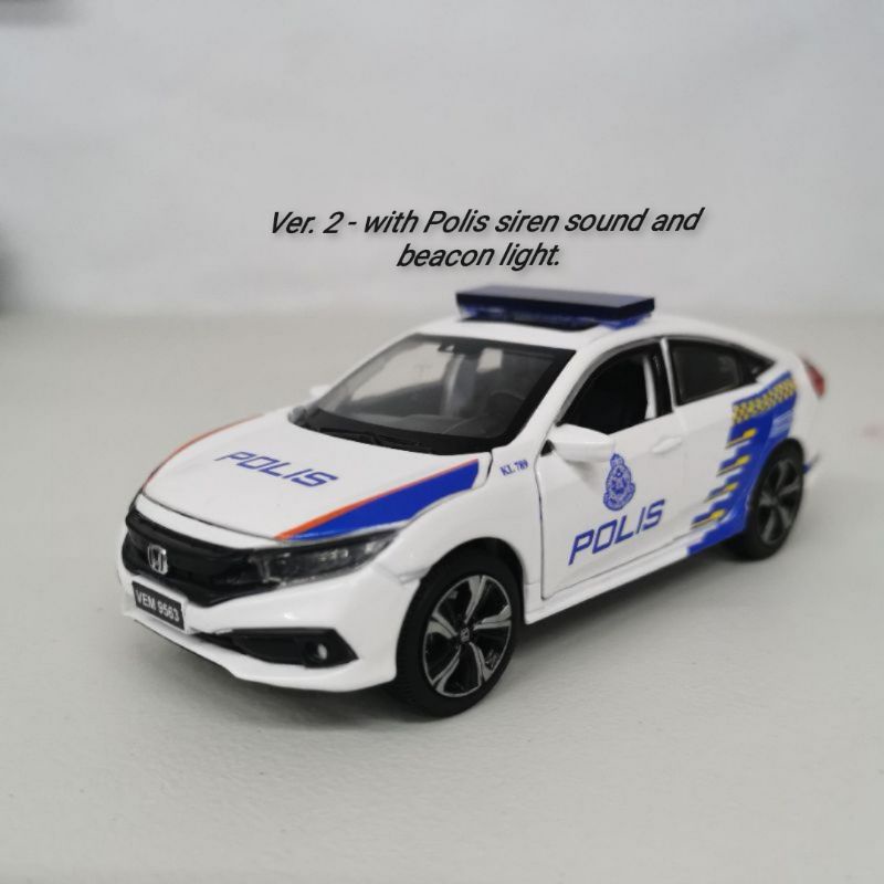 Honda Civic FC Pdrm mpv polis car, MP polis Malaysia kereta polis with beacon lights and siren sound die cast car model