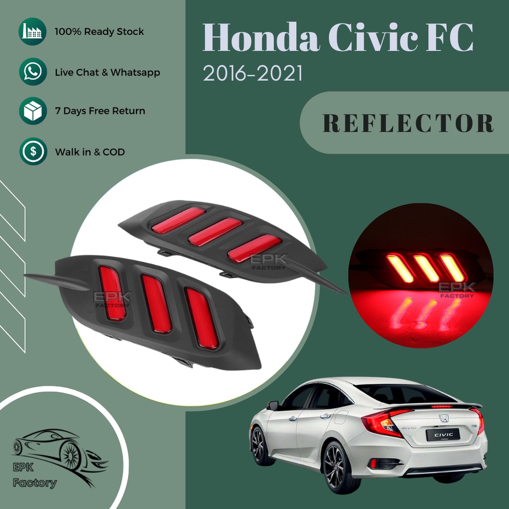 Honda Civic FC Rear Bumper Reflector Mustang Design LED Brake Tail Light 2016 2017 2018 2019 2020 2021