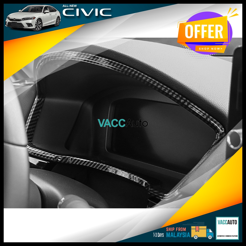 Honda Civic FE 11th Meter Carbon Lining Interior Decoration Texture Dashboard Panel Frame 2022 - 2026 FE FL 11th Vacc