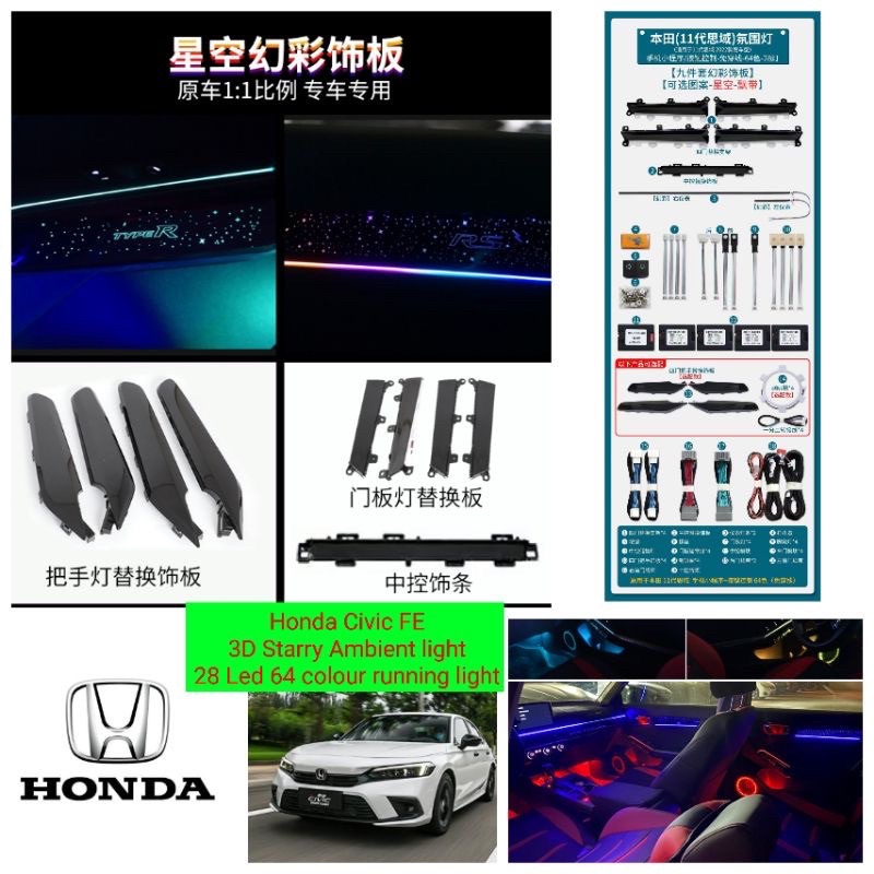 Honda Civic FE 2022 2023 2024 64 RGB Galaxy Ambient dashboard panel speaker cover led lamp light bodykit body kit