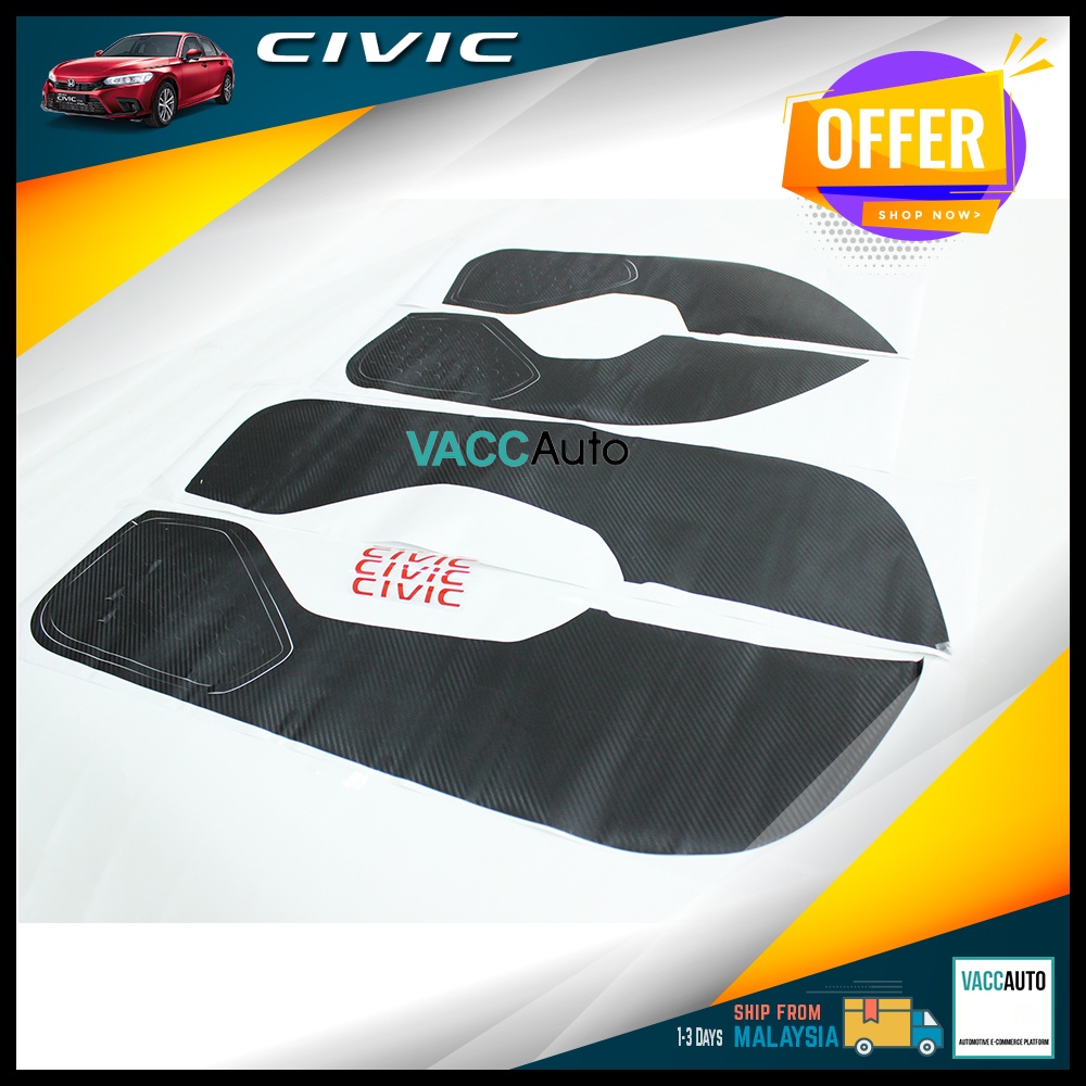 Honda Civic FE 2022 - 2026 Door Panel Carbon Sticker Protector FE 11th Gen Vacc Auto Car Accessories