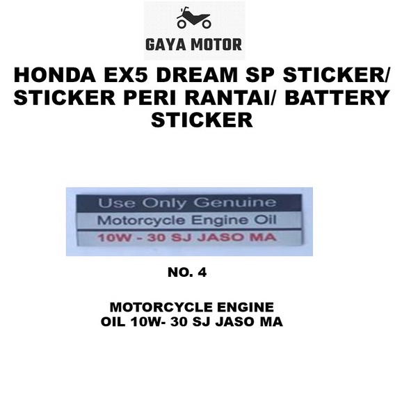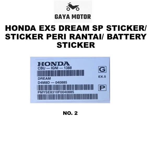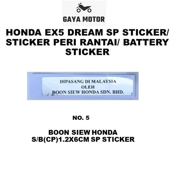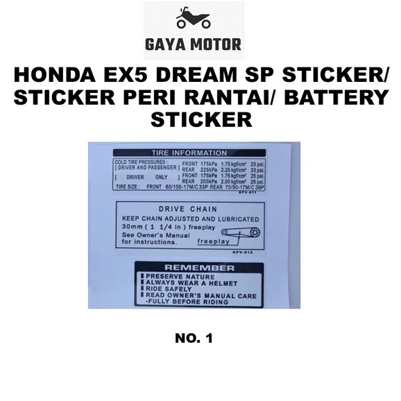 Honda EX5 Dream SP Sticker/ Sticker Peri Rantai/ Battery Sticker