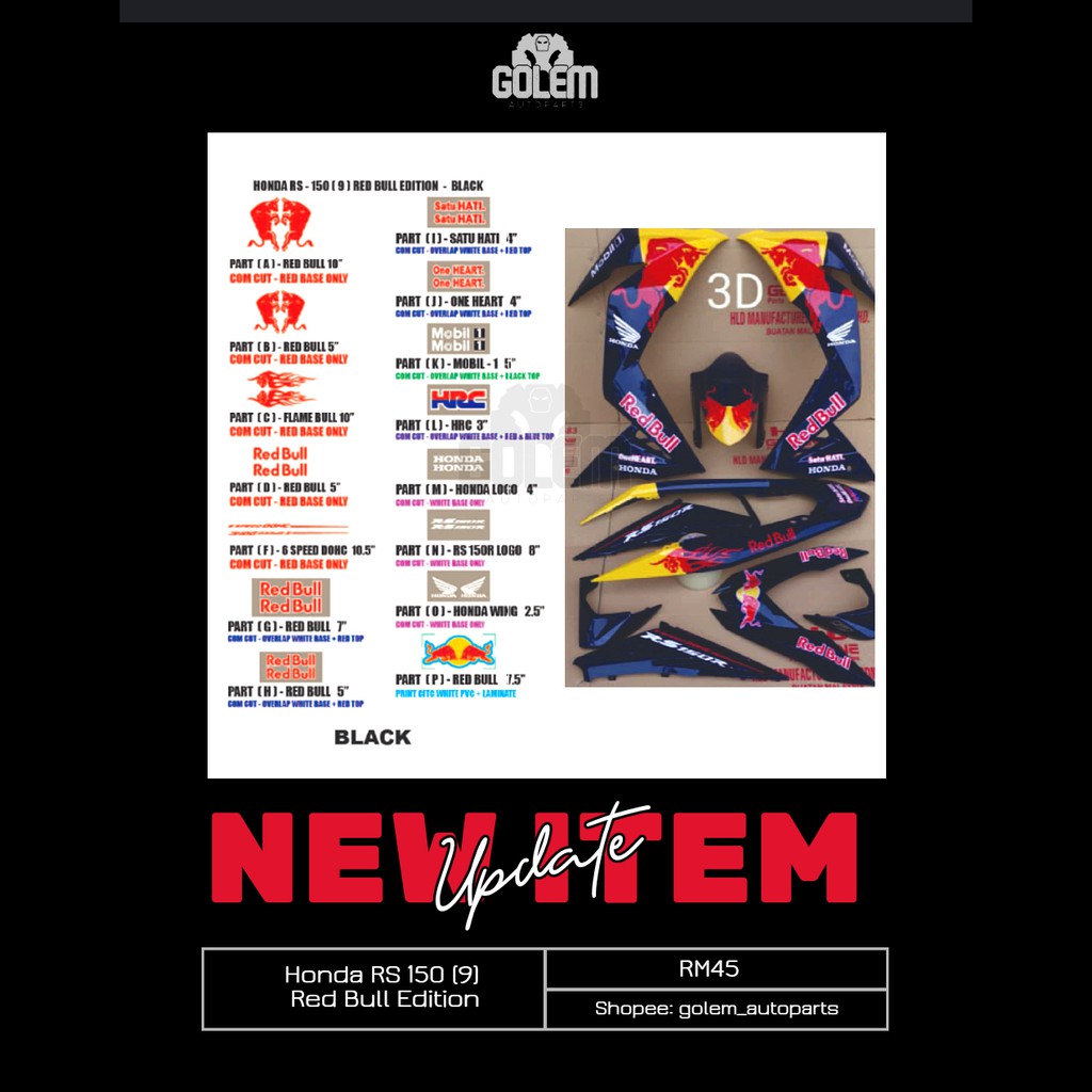 Honda RS150 (9) Red Bull Edition GRED AAA Sticker body Stripe