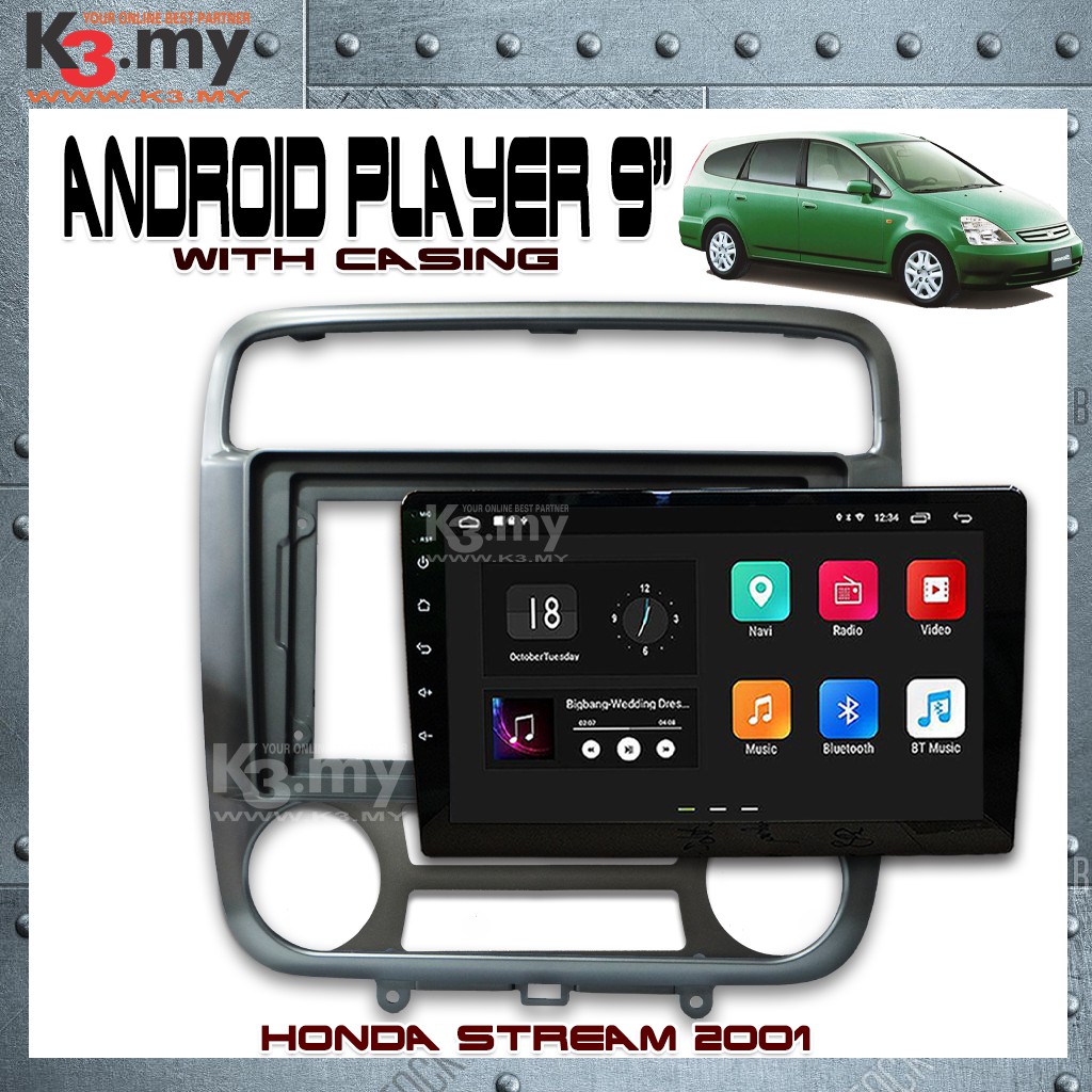 Honda Stream 2001 9'' Android Player GPS Waze + Casing (Set) With Socket