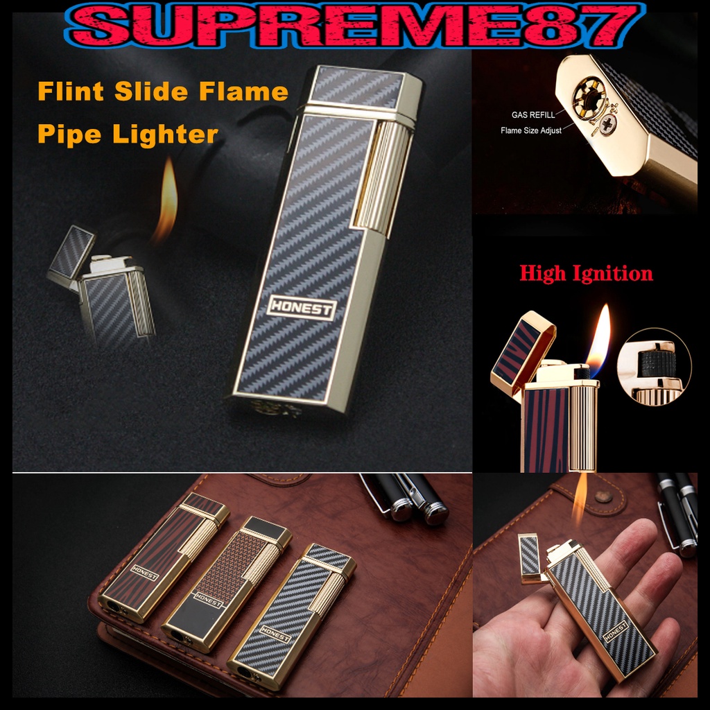 Honest Flint Flame Pipe Lighter honest Golden Wheel jet lighter Honest lighter Side Flint Ignition Lighter With gift Box