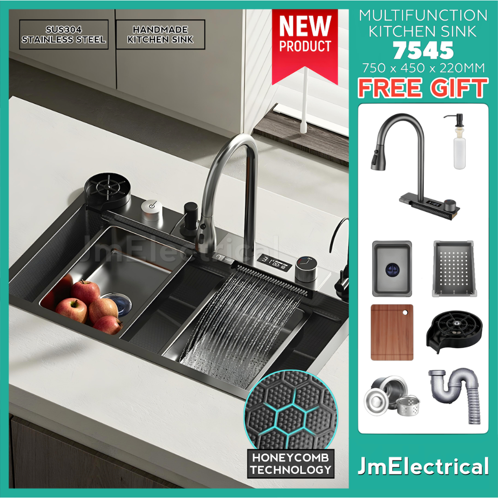 Honeycomb NANO SUS304 Stainless Steel Flying Rain Waterfall Multifunction Kitchen Sink Workstation Sink Piano Sink