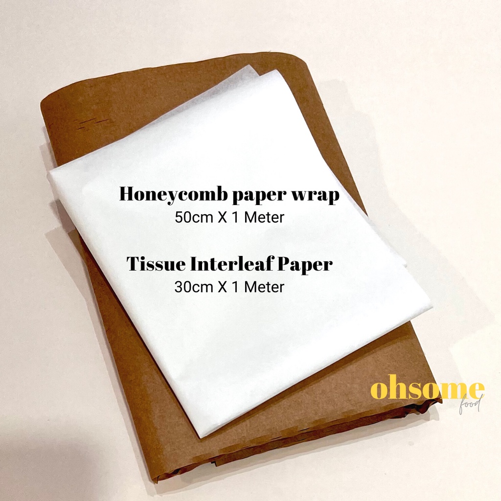 Honeycomb Paper Wrap (50cm X 1 Meter) Bubble Wrap Kraft Paper (Geami WrapPak) + White Tissue Interleaf Paper