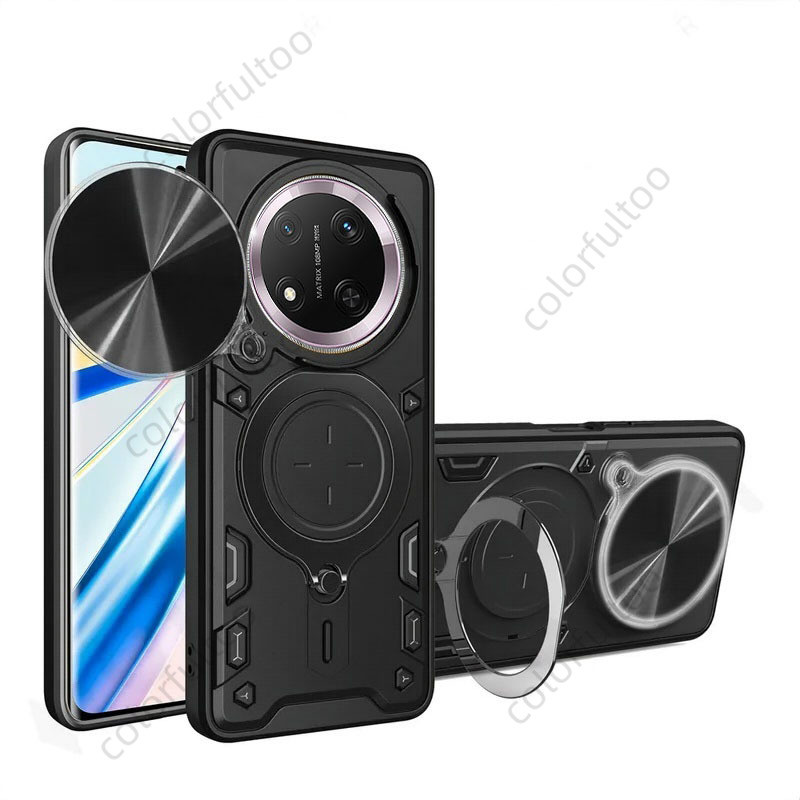 Honor X9C Smart Magnetic Car Ring Holder Case For Honor X9d X9C X9A X9B HonorX9C 5G Luxury Armor Shockproof Casing Anti-fall Bumper Slide Push Camera Protect Back Cover Hard Cases