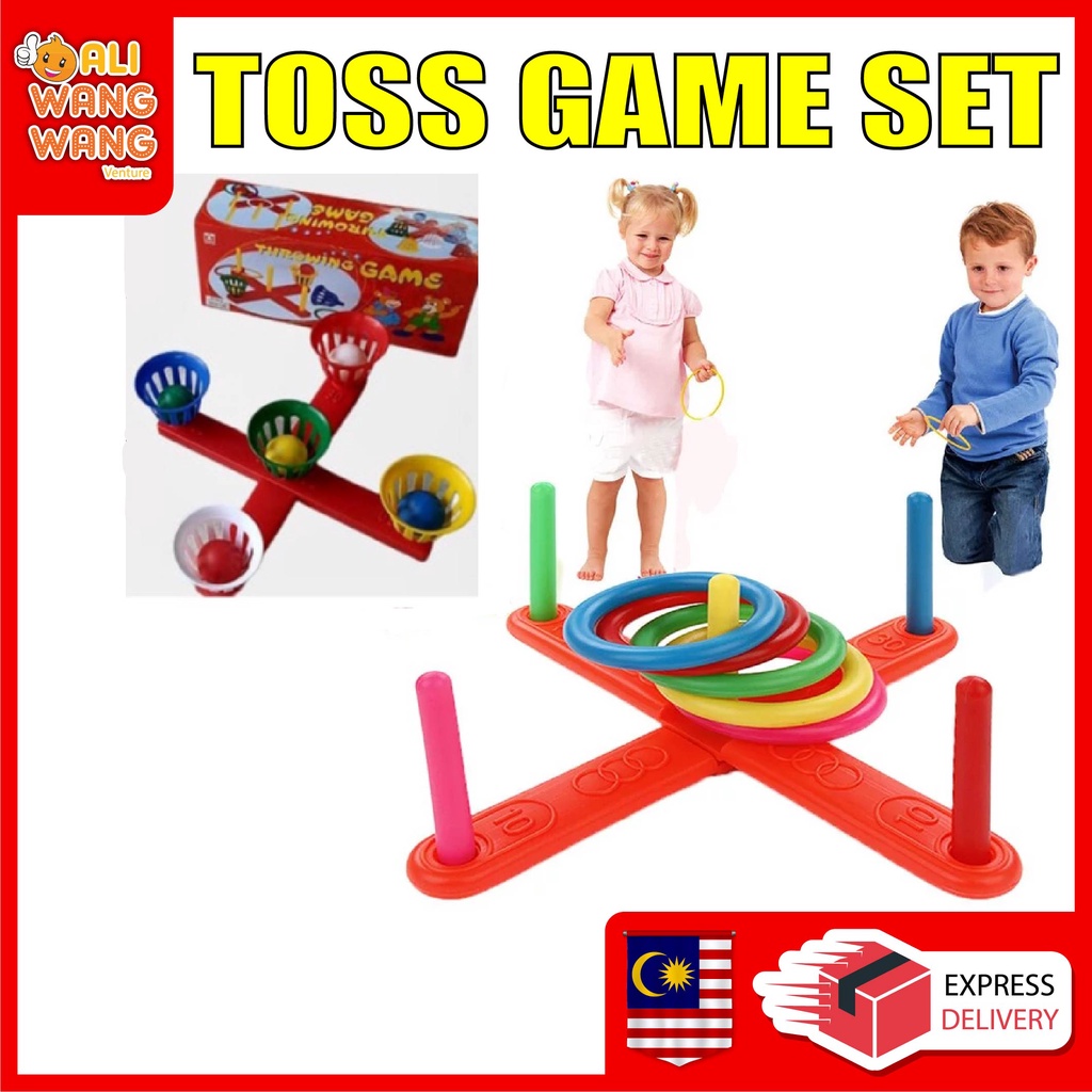 Hoop Ring Toss Game FULL SET Plastic Quoits Garden Game Pool Toy Outdoor Family Kids Fun Set
