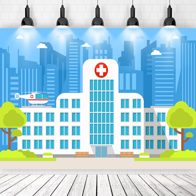 Hospital Backdrop For Photography Baby Shower Kids Children Girl Boys Lifesaving Aircraft Ambulance Ward Background Photoshoot Party Decor