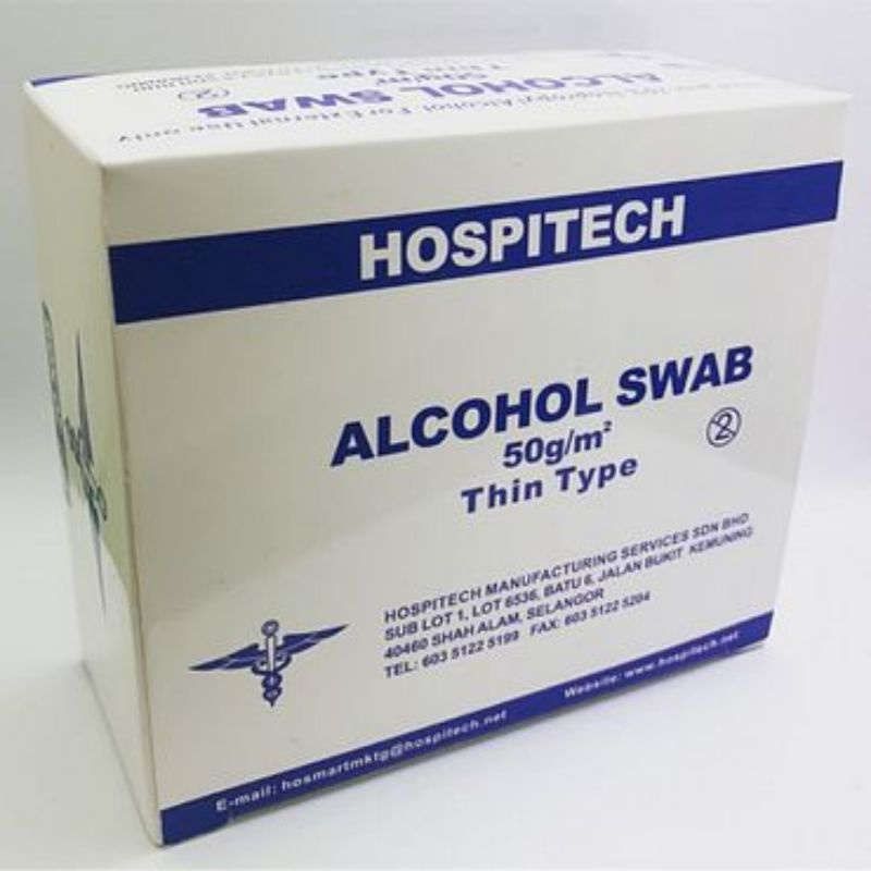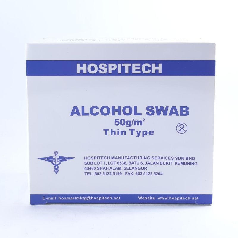 Hospitech Alcohol Swabs 100's (70% Isopropyl Alcohol, To Kill Virus Bacteria)