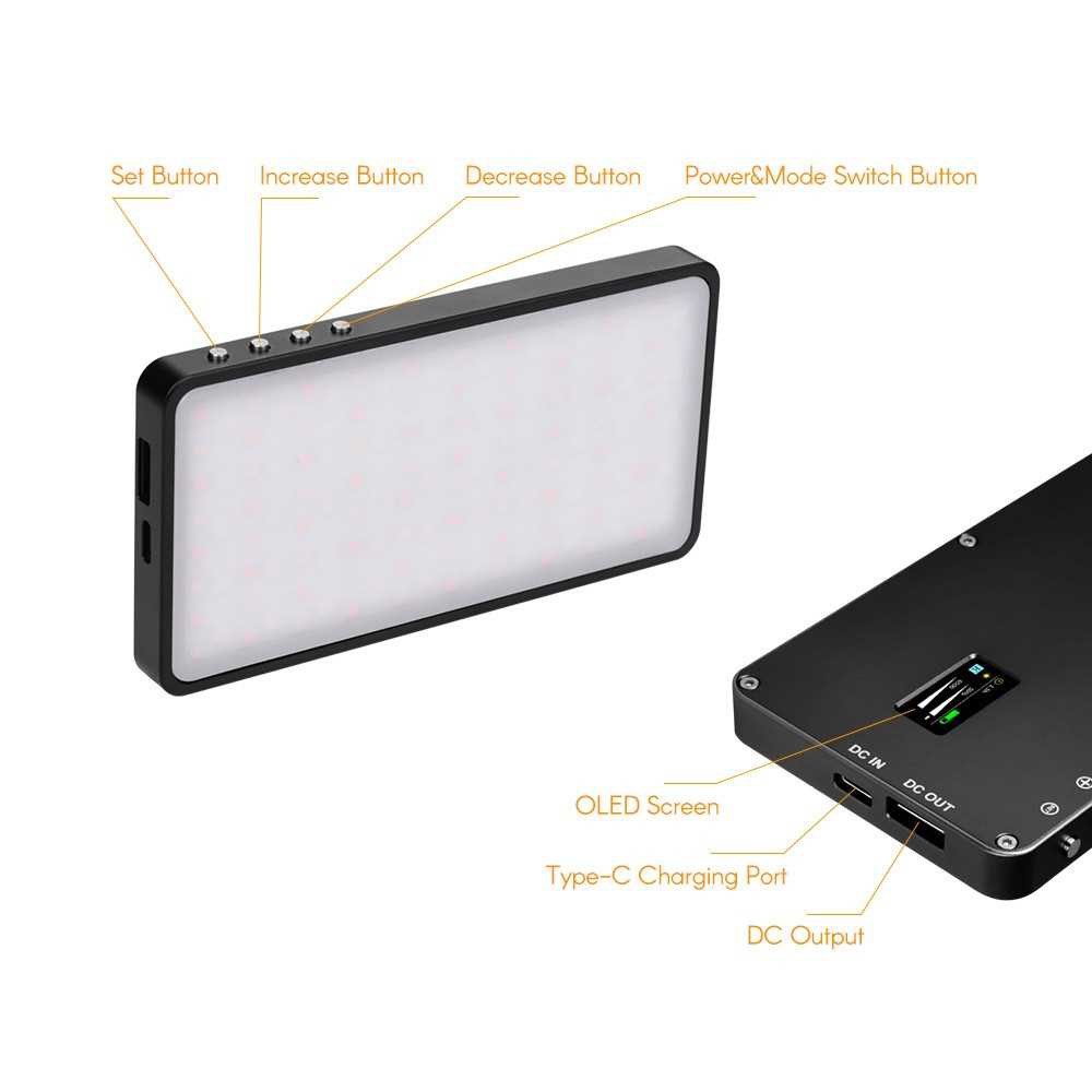 Hot Deal Andoer MFL-07 Portable RGB LED Video Light Fill Light 10W Dimmable 3000K-6500K CRI96 TLCI98 with OLED Screen 4