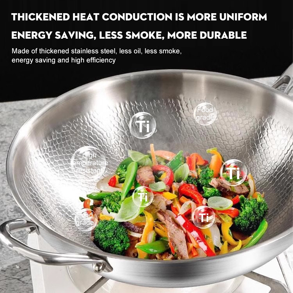 Hot Sale Pure Titanium Wok with Lid Non Stick Cooking Pot Scale Hammer Pattern Titanium Wok
