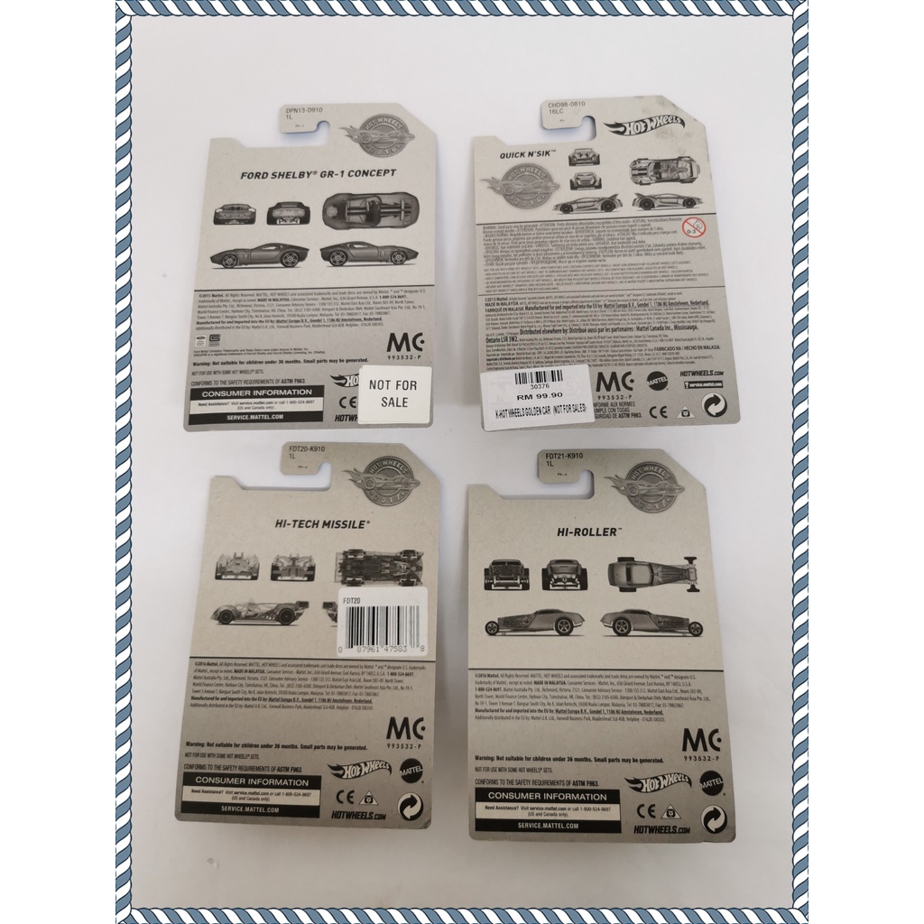 Hot Wheels Gold Edition Ford Shelby GR-1 Concept Hi-Roller Hi-Tech Missile Quick N' Sik