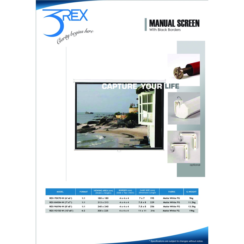 Hotdeal 3REX Self Screen Lock Manual Wall Mount Projector Screen - Matte White Screen Projector Screen Wall