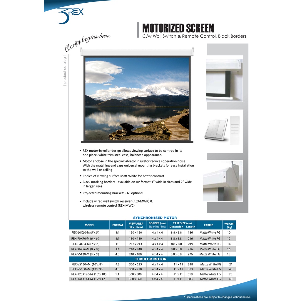 3Rex 70" x 70" (6 x 6) Motorized Projector Screen With Wireless Remote - Motorized Projector Skrin