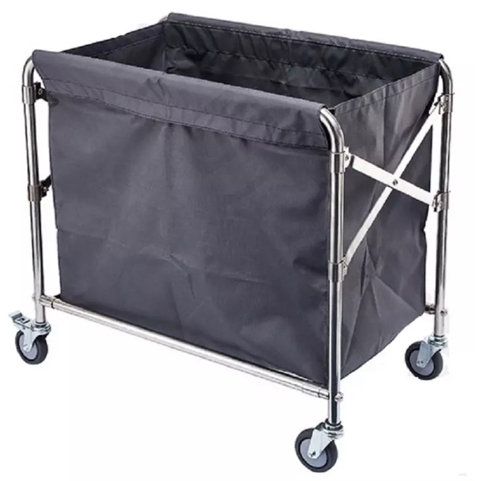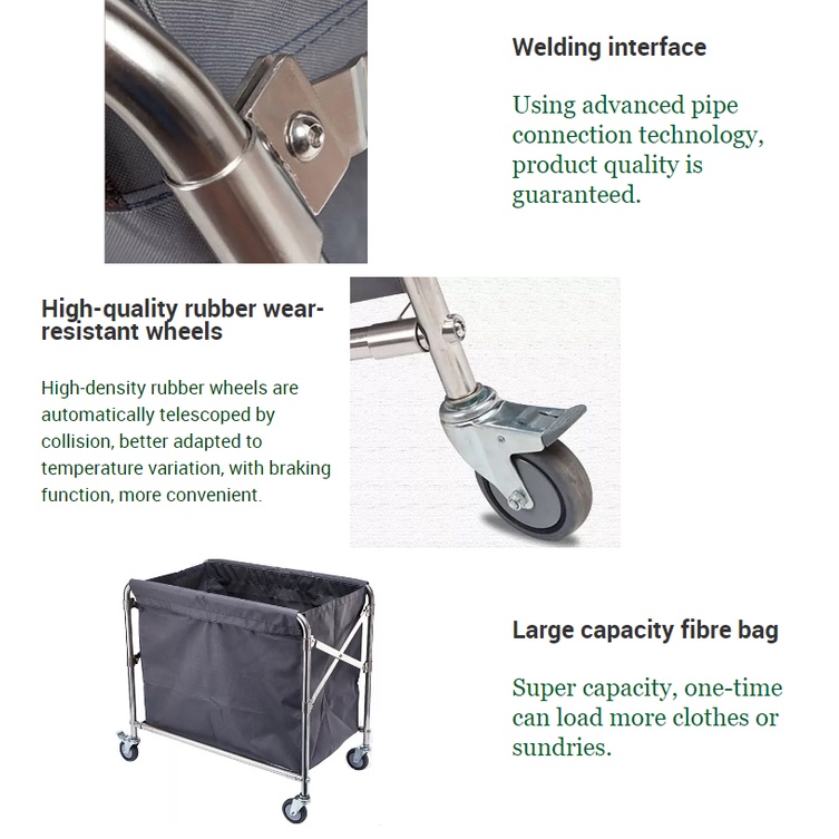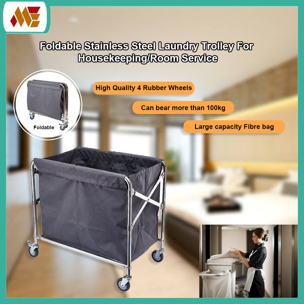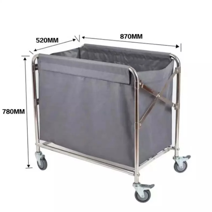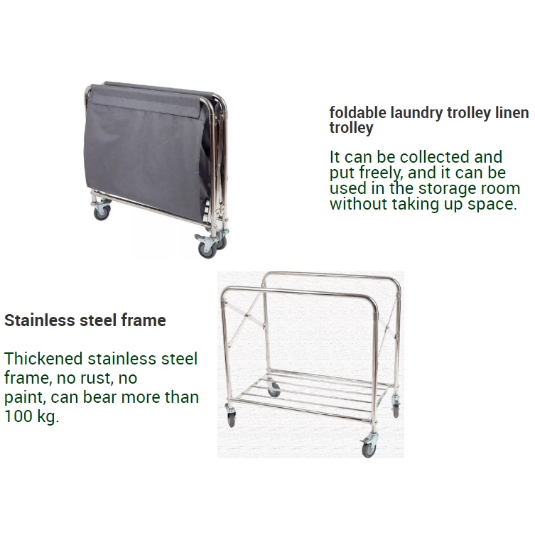 Hotel & Home Foldable Laundry Basket Cart / Stainless Steel Laundry Trolley with Removable Bag For Housekeeping