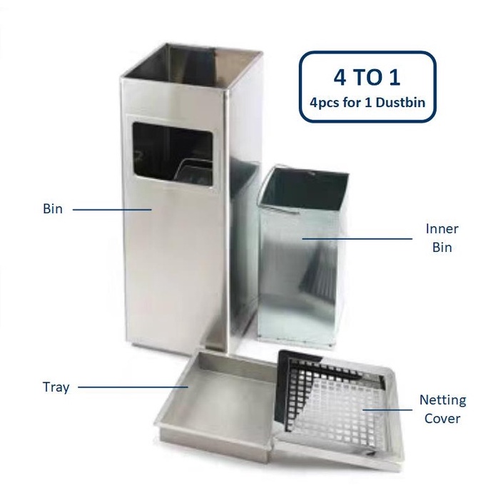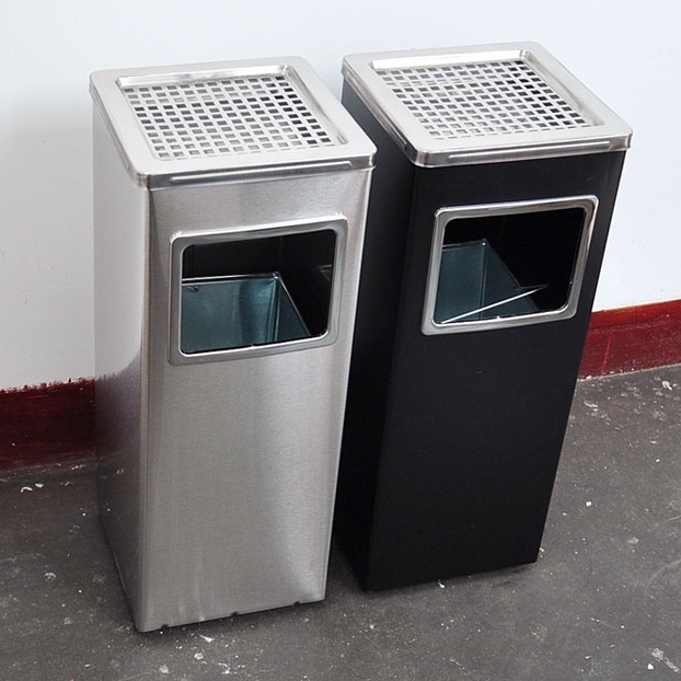 Hotel Stainless Steel Square Dustbin/ Commercial Shop Corridor Ashtray Trash Bin/ Home Garden Waste Bin/ Tong Sampah