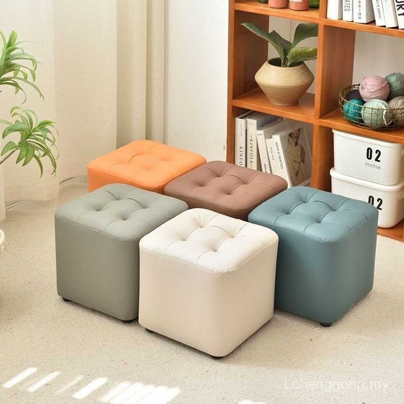Household Soft Bag Stool Solid Wood Shoe Stool Door Can Sit Living Room Sofa Stool Wear Shoe Stool Foot Leather Stool