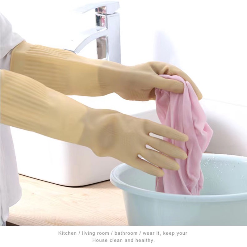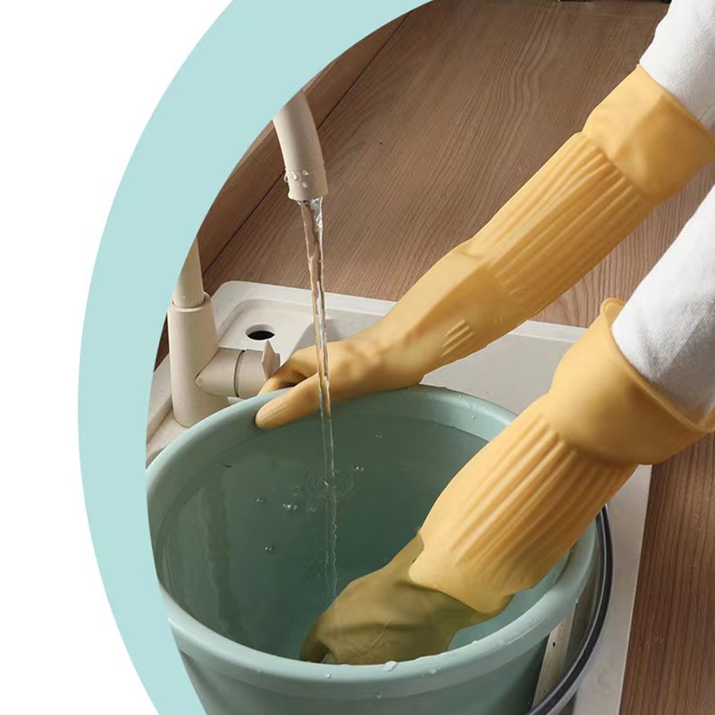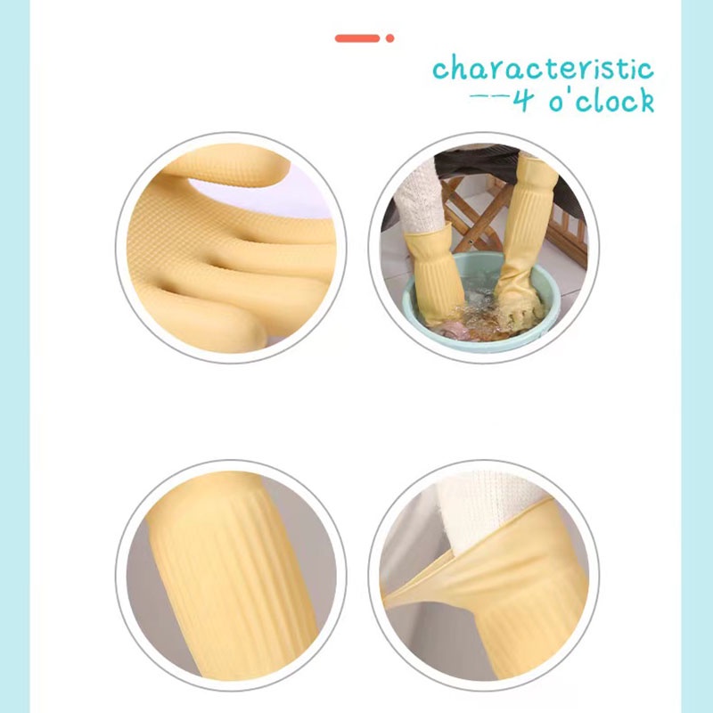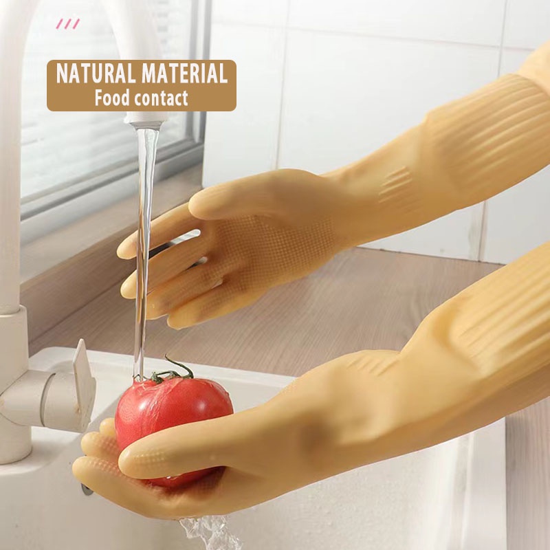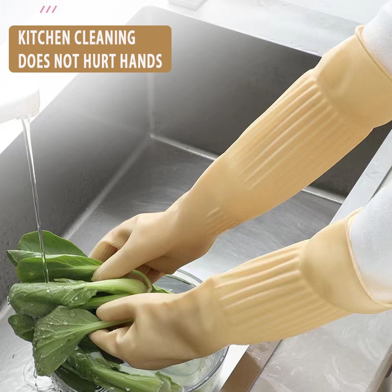Household Yellow Rubber Gloves Kitchen Cleaning Tools Ladies Dishwashing Gloves Extended Waterproof Oilproof Durable Car Washing Gloves