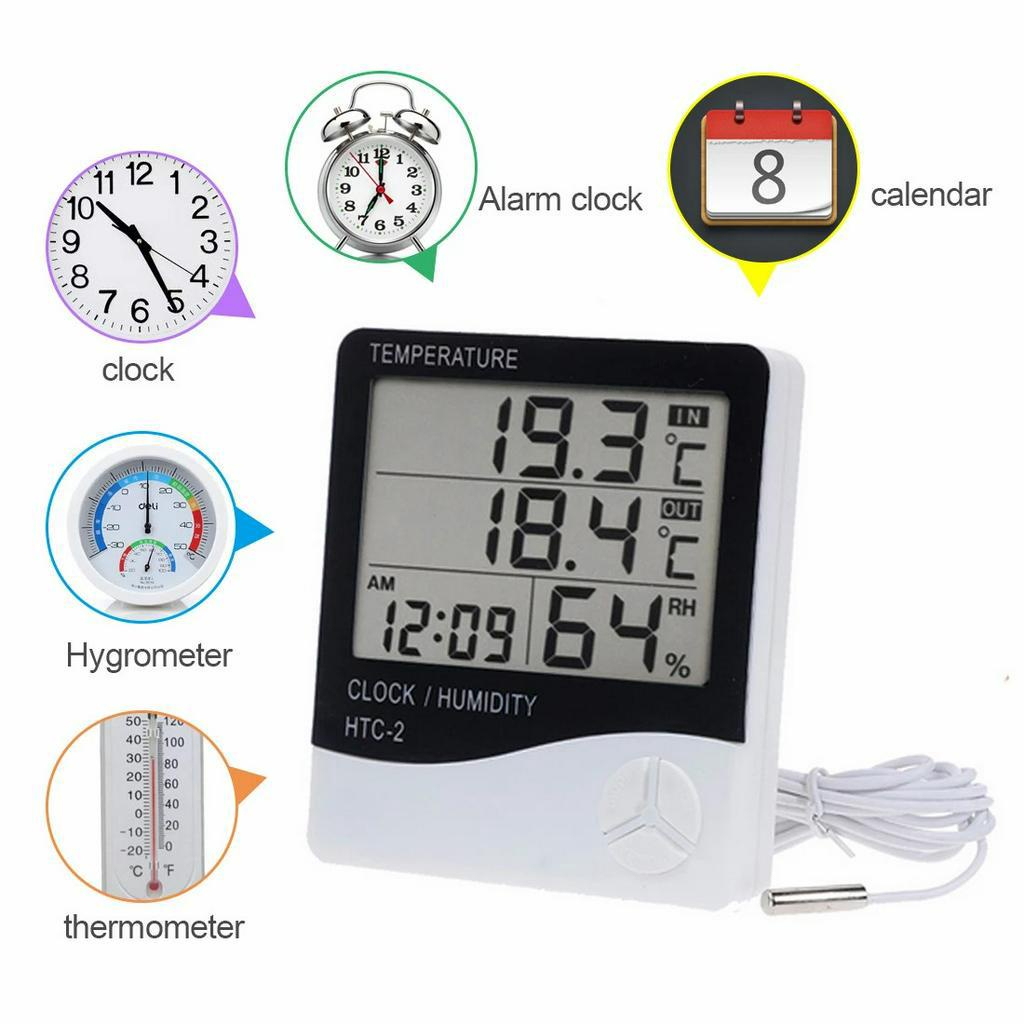 HTC 2 HYGROMETER THERMOMETER DIGITAL DIGITAL CLOCK/ ROOM TEMPERATURE MEASUREMENT DIGITAL THERMOMETER TOOL/ TEMPERATURE MEASURING THERMOMETER DIGITAL CLOCK THERMOMETER ROOM THERMOMETER CLOCK TEMPERATURE HTC-1 - GUDANESIA
