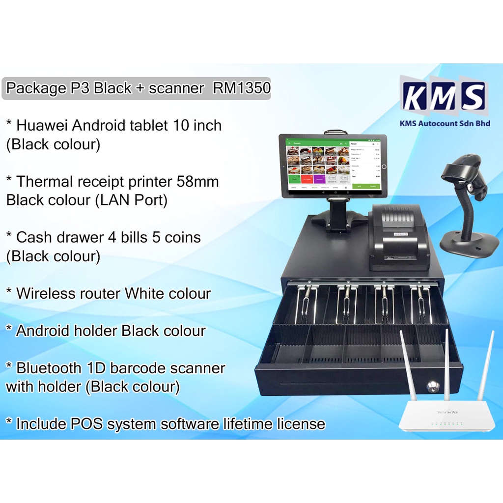 Huawei 10" Android All in One Android Pos system machine with Cash Machine small money box ST53