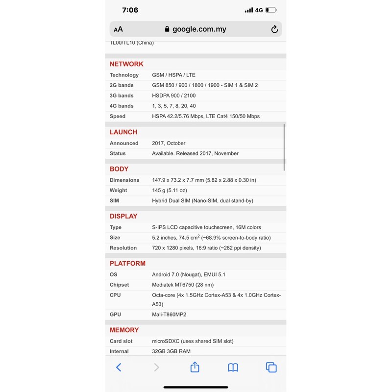 Huawei Honor 6C Pro/V9 play (3GB+32GB) Android 7.0 , 4G , Fingerprint (original secondhand)