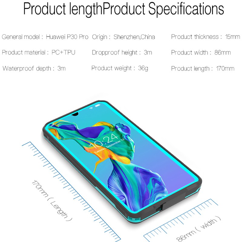 Huawei P30 Pro Waterproof IP68 Case Underwater 3m Diving Swimming Surfing Shockproof Hard Cover